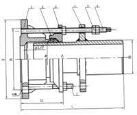 flange limited telescopic joint is set in the AF-type Falan Song additional compensation on the basis of joint stud from the limit, the maximum amount of stretching at the double nut lock, compensation foundation settlement due to thermal expansion and contraction caused by the pipeline and the axial displacement and the deflection and eccentric, to protect the valve device. According to the different connections into a single flange limited telescopic joint and dual flange limited telescopic joint.